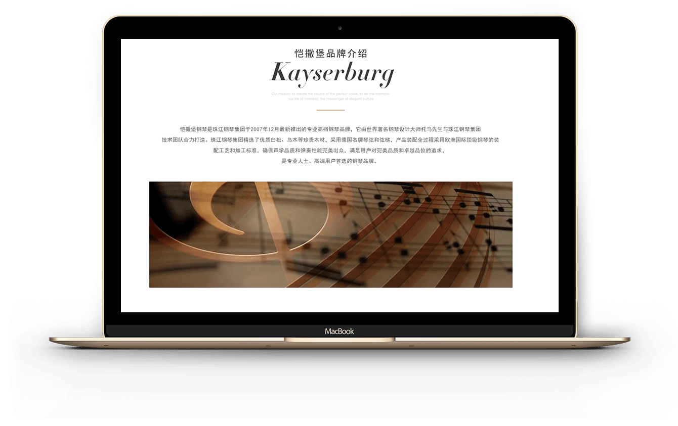 “恺撒堡”一词在欧洲代表着皇室贵族。通过网站的搭建,为的是引导出具体的品牌,将通过独具特色的优势,来打响品牌的知名度。更加具体形象化的让受众了解到“恺撒堡钢琴”的魅力,不仅仅是一架钢琴,更是代表对完美品质和卓越品位的追求。