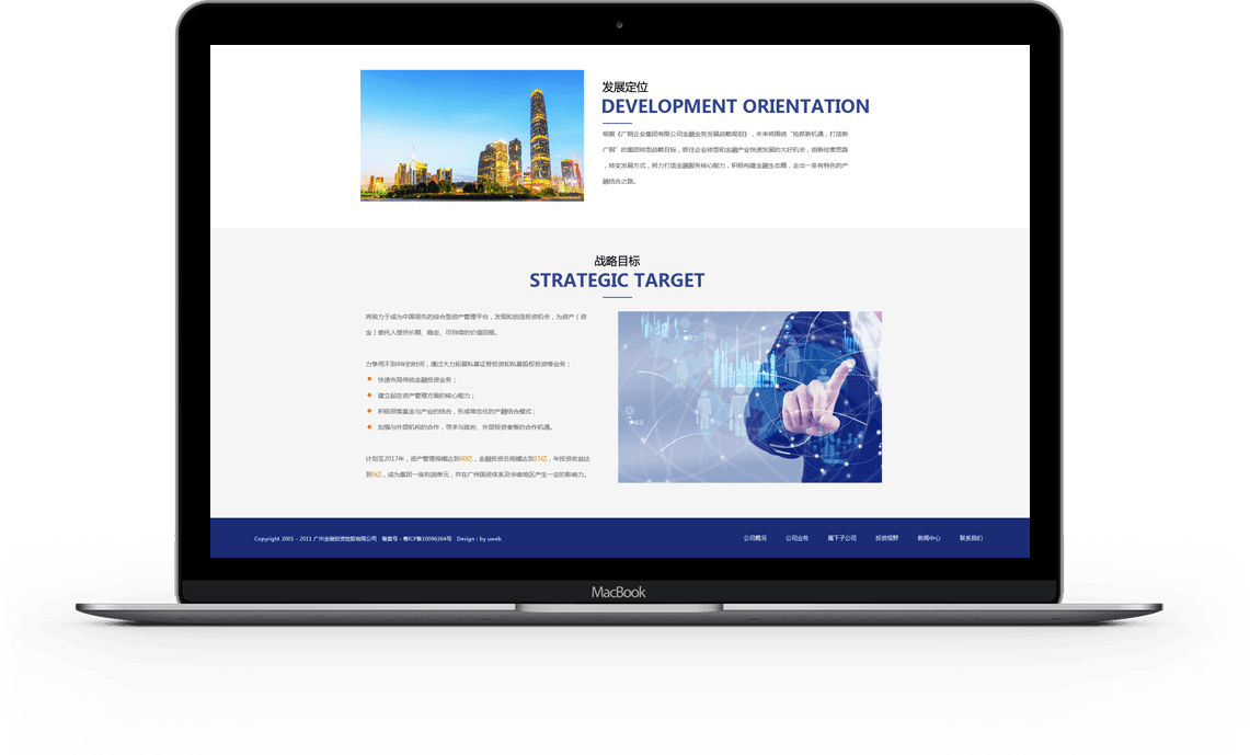 在颜色搭配上选用具有企业vi色系的蓝色作为点缀,彰显企业的整体形象,同时也让整个页面更加具有活力性。另外用户在首页中移动光标,并移至公司业务或公司动态,有明显的变动效果,带有一定的互动性。