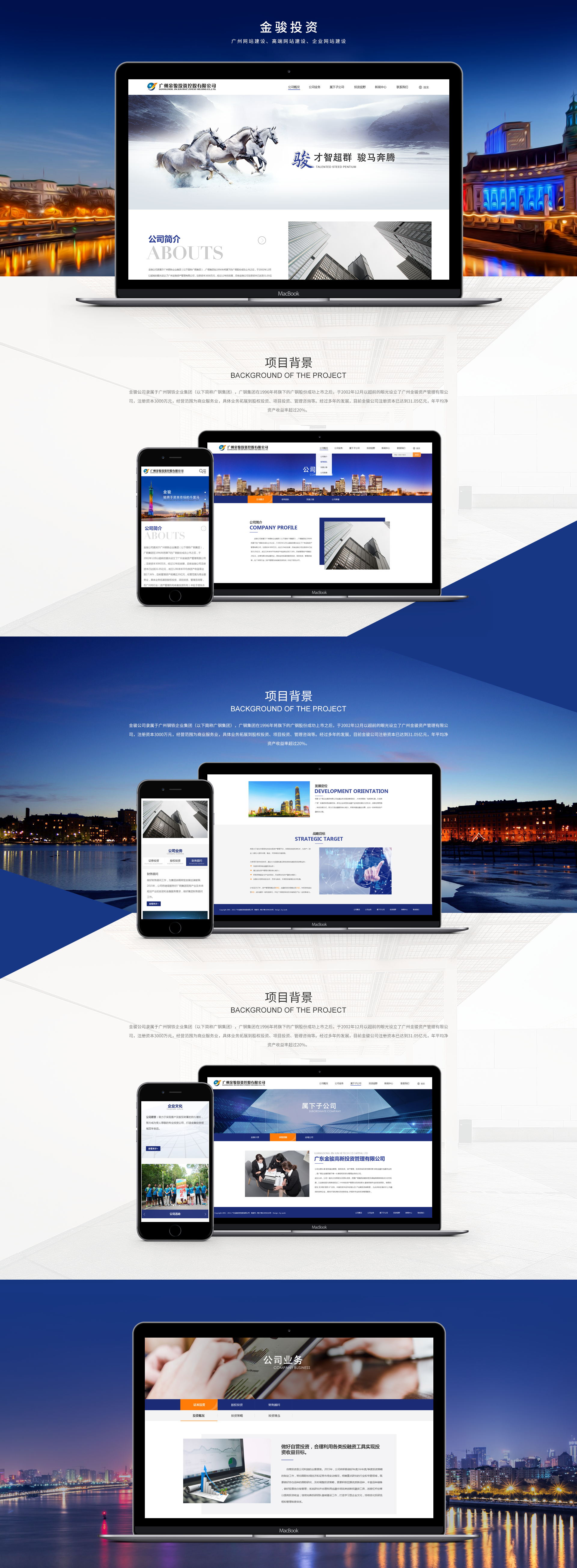 整体页面以简洁化展示出企业的形象,各个结构版块层次分明,“banner”图凸显企业的特色,首页主要重点展示公司简介,公司业务和公司动态,搭配相应的图片有效清晰展示企业的相关内容。