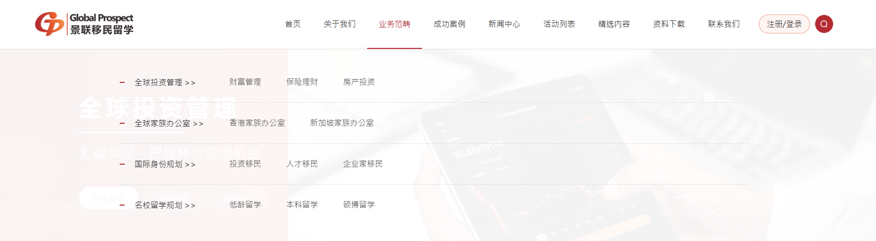 网站亮点颇多,能一站式展示从寻找投资者到项目落地的全程服务,“经连解决方案” 板块介绍丰富精准的投资者信息库,可按需求筛选适配海外项目,让用户明晰服务预期。用户可了解到能与海外投资者、行业协会领导、政府官员等建立长期合作关系,为开发区和投资者创造更多合作机会。业务涵盖投资移民、国际教育、财富管理等多元领域,全面满足不同用户需求。
