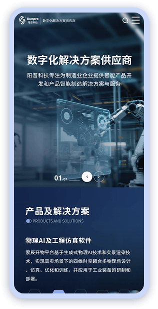 阳普科技作为深耕制造领域的数字化解决方案服务商,携手索辰、PTC 等行业领军伙伴,已为上千家企业提供专业服务。此次其官方网站(https://www.sunprocn.com/)由优网科技量身打造,优网科技凭借深厚的建站积淀与精湛技术,精准洞察阳普科技的业务核心与发展需求,高效整合企业核心服务体系、丰富客户案例等关键资源。依托强大的定制化建站实力,优网科技不仅为阳普科技搭建起全方位展示企业实力的专业平台,让客户能便捷直观地了解其服务优势,更助力阳普科技进一步强化数字化服务品牌形象,为双方深度合作写下亮眼开篇。