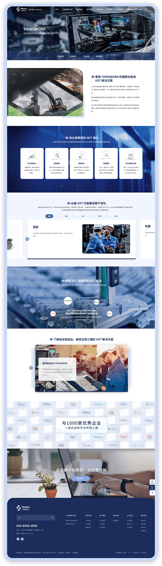 1.设计亮点:网站设计紧扣工业数字化主题,优网科技通过清晰规整布局,将产品解决方案、客户案例等核心信息重点呈现。各板块边界分明,借助图标与精简文字结合,化解技术内容复杂性,同时嵌入阳普服务的知名客户标识,经优网设计优化,进一步提升品牌可信度与专业感。