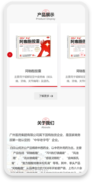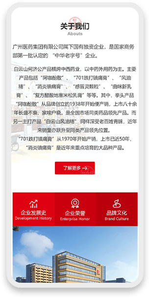 - 产品展示板块重点突出“消炎镇痛膏”“风油精”等明星产品,搭配轻量化动画效果,增强产品展示的吸引力与表现力;