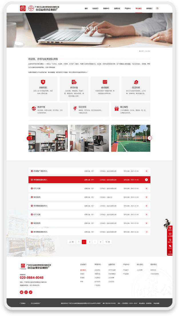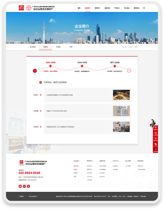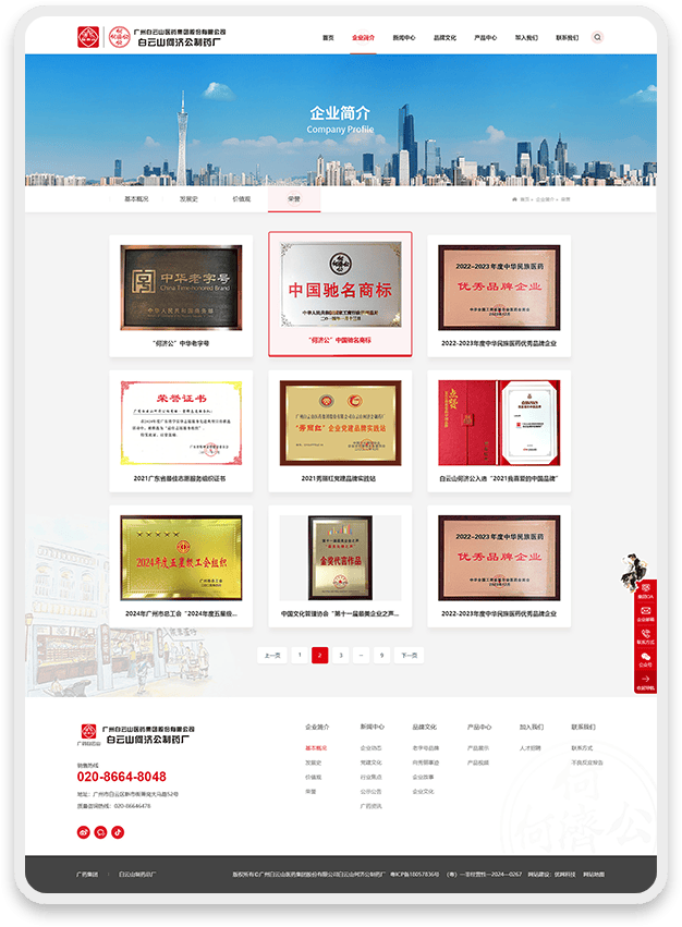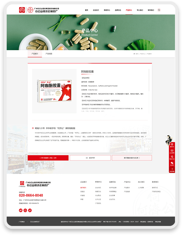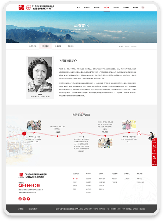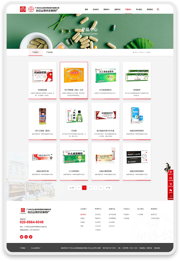 网页设计深度融合白云山何济公品牌元素: