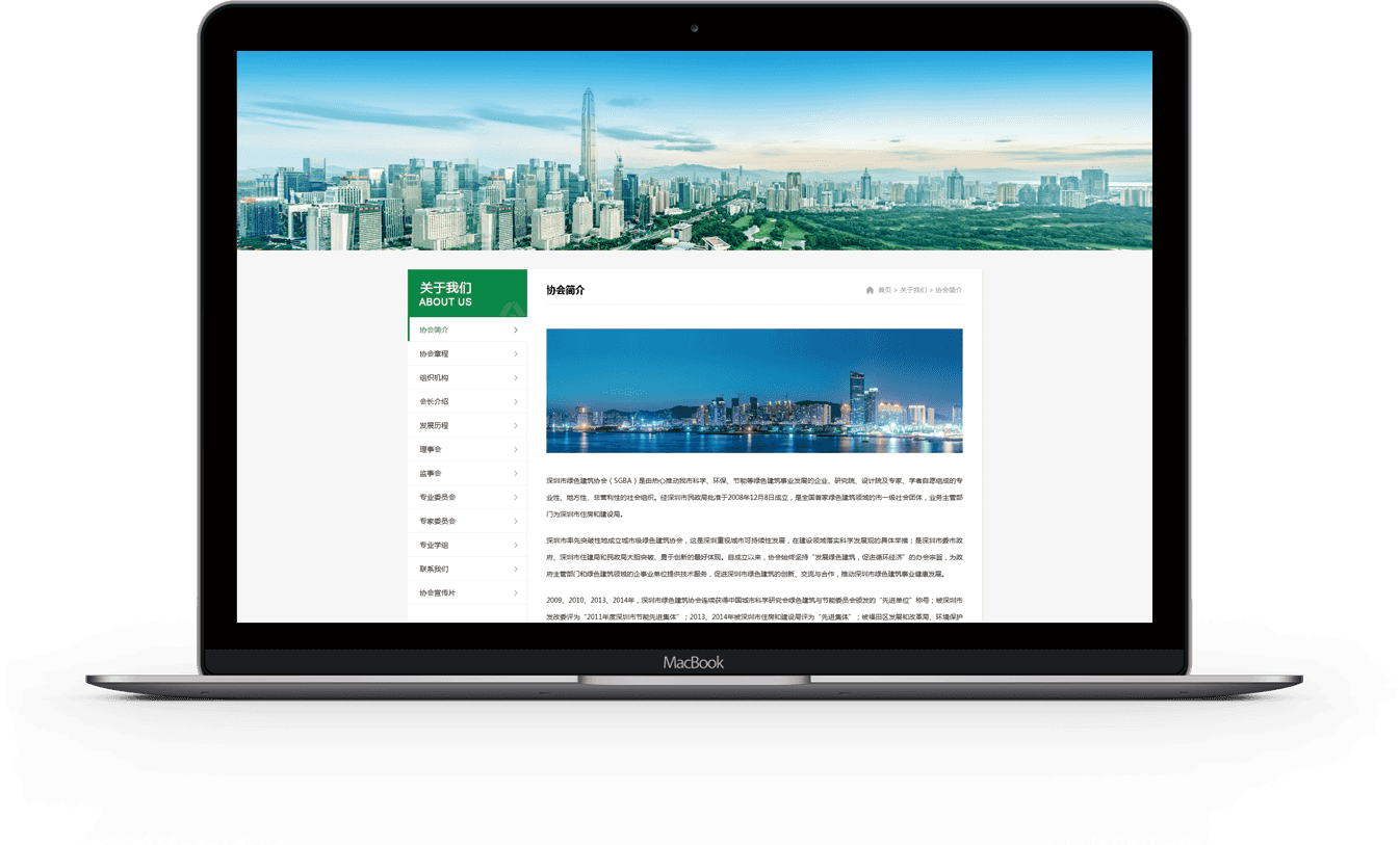 通过banner大图加“打造绿色城市,建设美丽深圳”的字眼,形象的展示企业的内在特点。同时运用企业vi色系绿色,在整体页面中作适当的点缀,有效凸显了企业的气质和增添了画面满满的活力感,使用户体验效果上升一个层次。