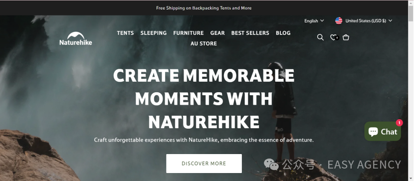 作为国内领先的户外用品品牌,Naturehike通过精准的品牌定位成功进入海外市场。品牌专注于提供高品质、轻量化、多功能且具备竞争力价格的户外装备,产品涵盖帐篷、睡袋等,价格区间从$16至$799不等,覆盖了从入门级到高端消费者的广泛需求。