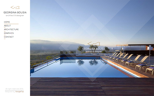 6.Georgina Bousia的网站很直观的给用户一种清新平静的感觉。干净简单的导航也能为网站带来高端大气的感觉,但也不可否认设计师在其中花了很多小心思。内容大图上有轻微的半透明几何阴影效果,让图片中的风景多了一些阳光洒落的设计感。