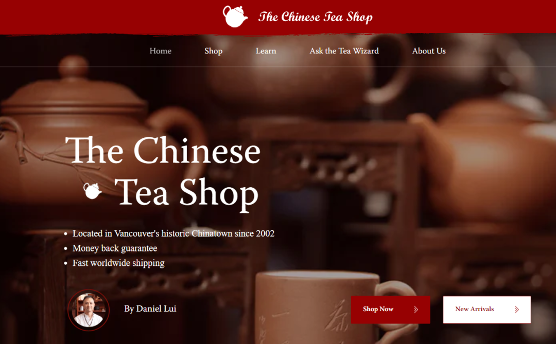 图源:The Chinese Tea Shop独立站宜兴紫砂器(壶)是中国特有的手工制造陶土工艺品,在海外市场,这样的中国传统产品同样受到老外们的喜爱。该独立站有8种茶叶类型,还有多种茶具产品,种类丰富。此外,The Chinese Tea Shop充分发挥独立站优势:1品牌故事:创始人Daniel Lui于1997年从香港搬到加拿大,他从青少年时期就在父亲的影响下,对茶产生了浓厚的兴趣。2网站设计:独立站首页打开便是茶壶元素,就连LOGO也是一只紫砂壶,整体古色古香,非常符合其产品定位和品牌调性。