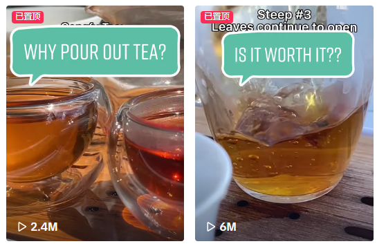 TikTok上,一个名为@yourteaguy的博主人在云南,只在账号发布简单粗暴的如何泡茶的视频,就赢得很多老外的围观。在一条回答why not drink the first steep?(为什么不喝第一泡)的视频中,博主以小青柑为例,展示泡茶水温、时长等步骤解答网友提问,获得240万播放。
