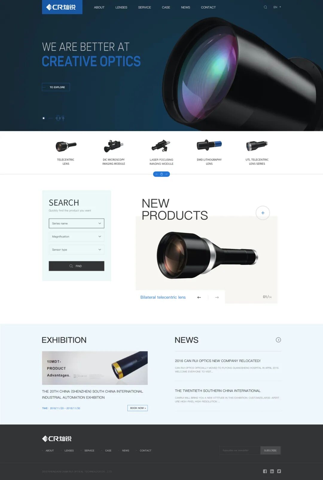 灿锐是一家国内领先的光学企业,主要是为工业客户提供尖端的光学解决方案、产品和服务。偶然的机会,灿锐找到增长超人,希望对自己的官网进行改版。这次改版是因为灿锐将要进入海外市场,但目前的官网无法很好的展现出自己的强大实力和精良优质的产品。
