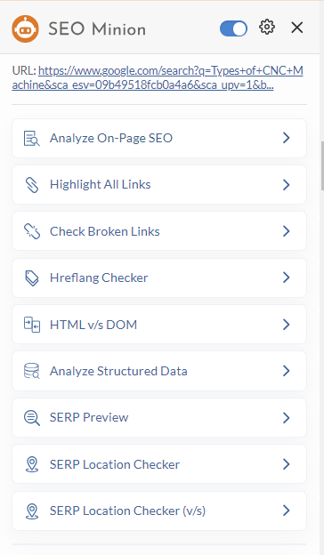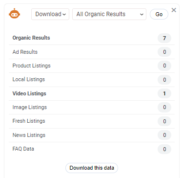SEO Minion侧重于页面分析功能,不过在使用过程中,我认为最好的功能是其可以一键下载SERP页面的各项数据,这可以让你快速获得这些数据利用其作为训练资料让AI创作出更好的内容、标题、描述等