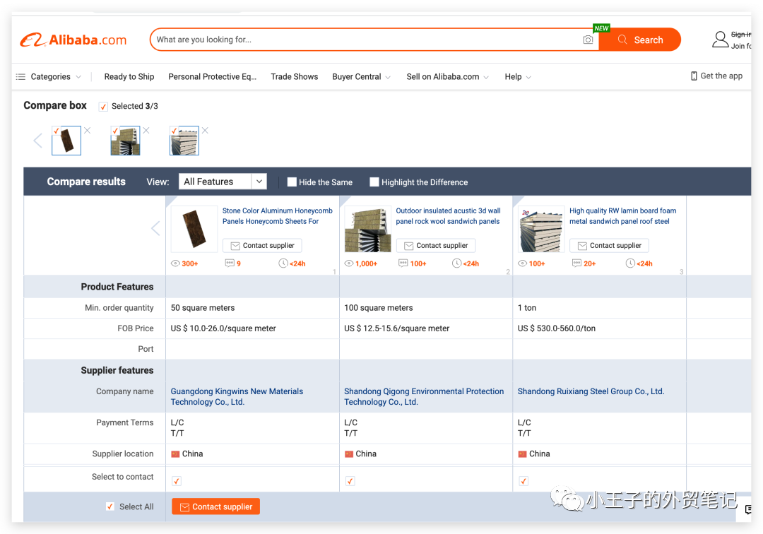 B端独立站一般不会显示价格,目的是获取询盘,进行线下交易,所以,你可以通过建立自己的品牌,依靠优质的内容营销,谷歌SEO等手段策略来吸引客户,避免卷入价格战。但是C端的独立站,比如Shopify,是需要展示相关的产品价格的,只是独立经营,不存在和其他家在线比价的情况。在阿里巴巴国际站上,买家在搜索产品时,可以在线点击Compare,比较同款产品的不同价格,方便买家自主比较和选择。