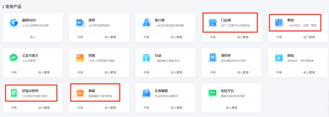 登录后会进入到用户控制台。您需要根据经营的核心目的做出选择: