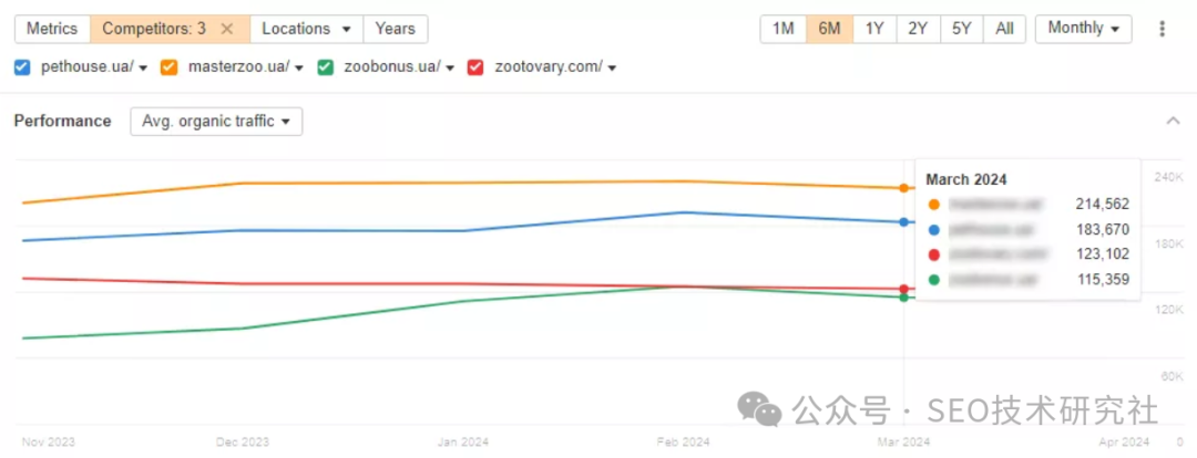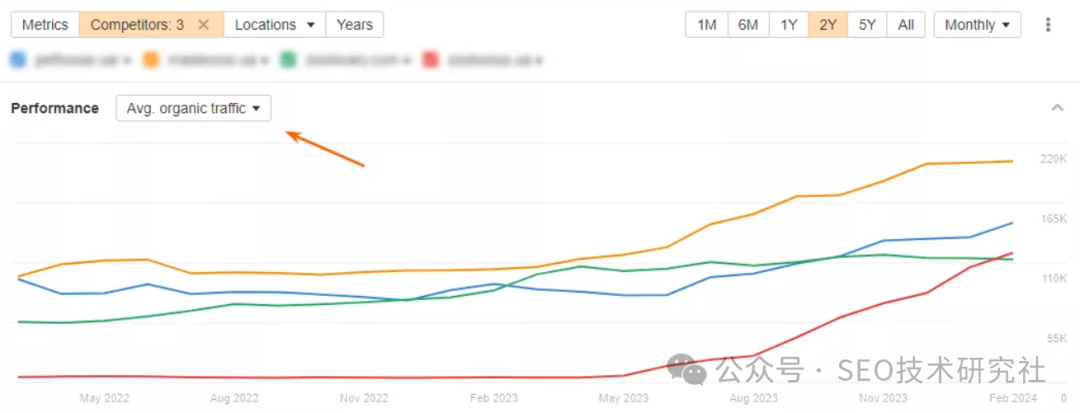 无论您为网站图表选择哪个选项,整个图表的默认设置都是 “Avg.organic traffic”。