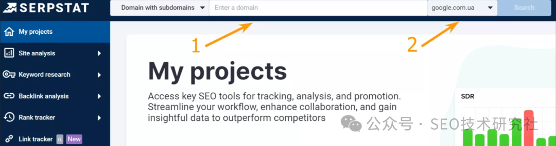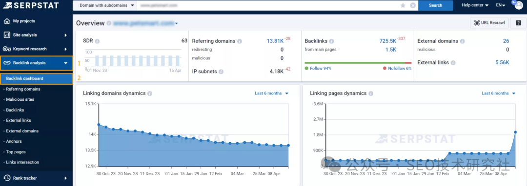 在 Serpstat 中,转到 “Backlink analysis” 工具并打开 “Backlink dashboard”。