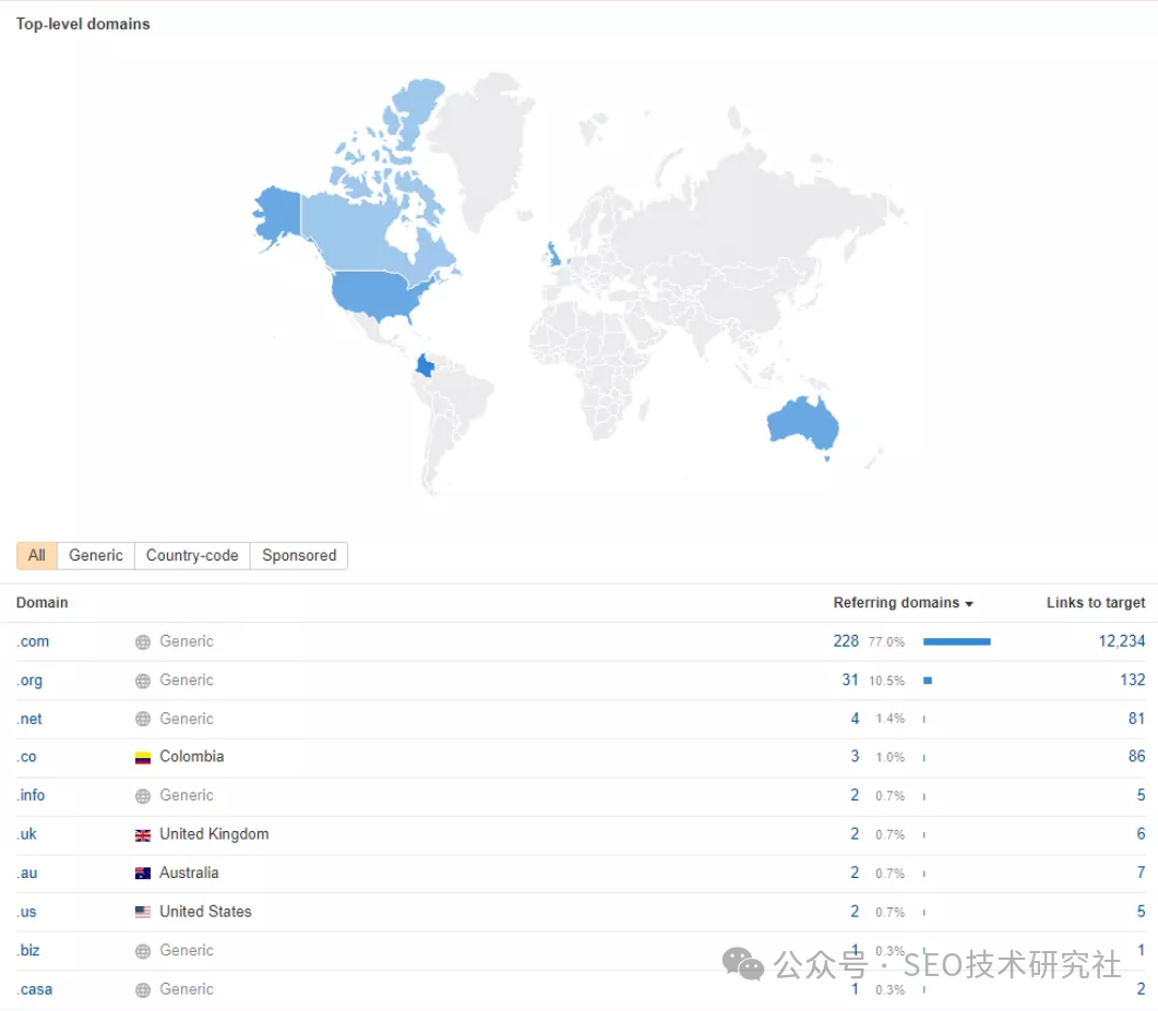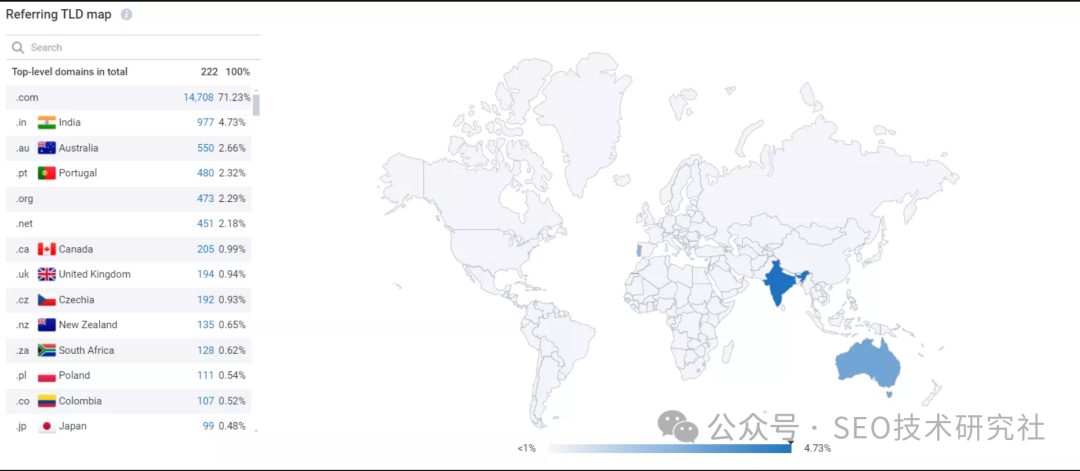 确定竞争对手反向链接的区域性也是分析的一个重要部分,因为根据其结果,您还可以选择捐助者进行合作。