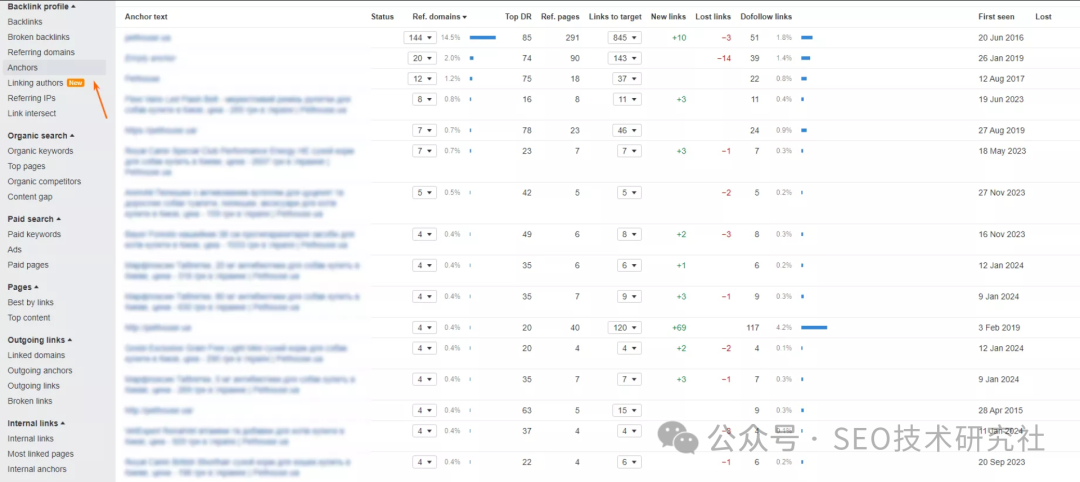 分析锚列表并确定锚、品牌和非锚反向链接的比例。