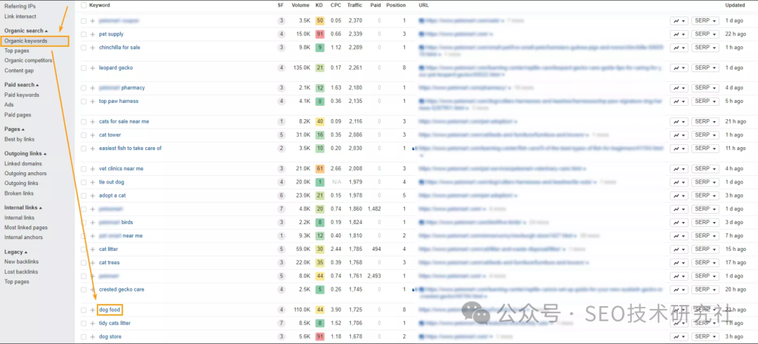 选择知名度最高、关键词最通用的竞争对手。排除市场、聚合器、目录、留言板等,选择与您的网站最相似的网站。为方便起见,可以从该工具中以表格的形式下载报告,并使用内置过滤器进行排序。