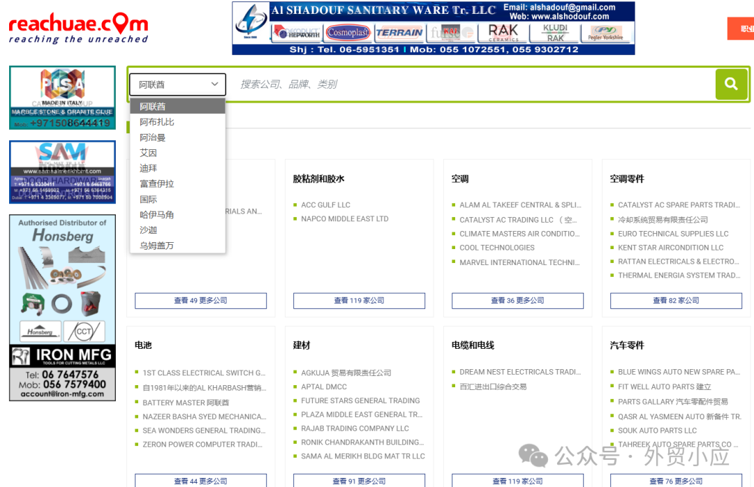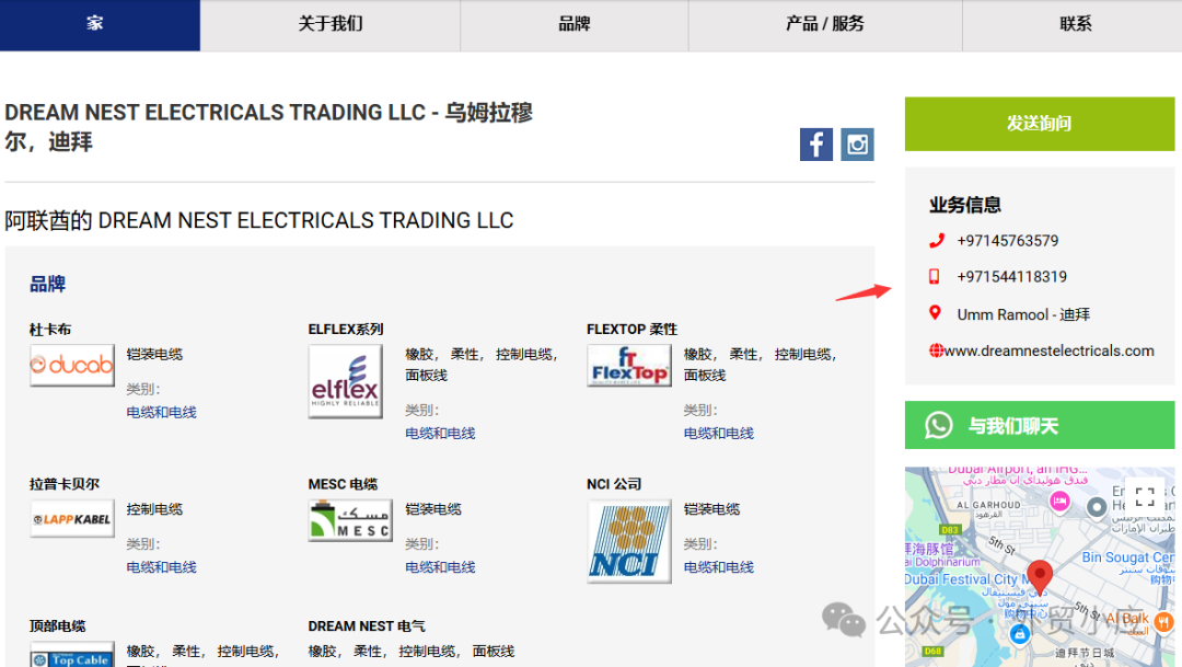 中东黄页网站,覆盖阿联酋、迪拜、阿布扎比等其他酋长国,行业全面,可以根据品牌、产品、类别等搜供应商的详细信息联系方式,而且可以看到他们目前在接入的品牌,很适合用来开发代理和本土经销商可以输入关键词或根据行业去搜,比如这里选择“电缆和线缆”,