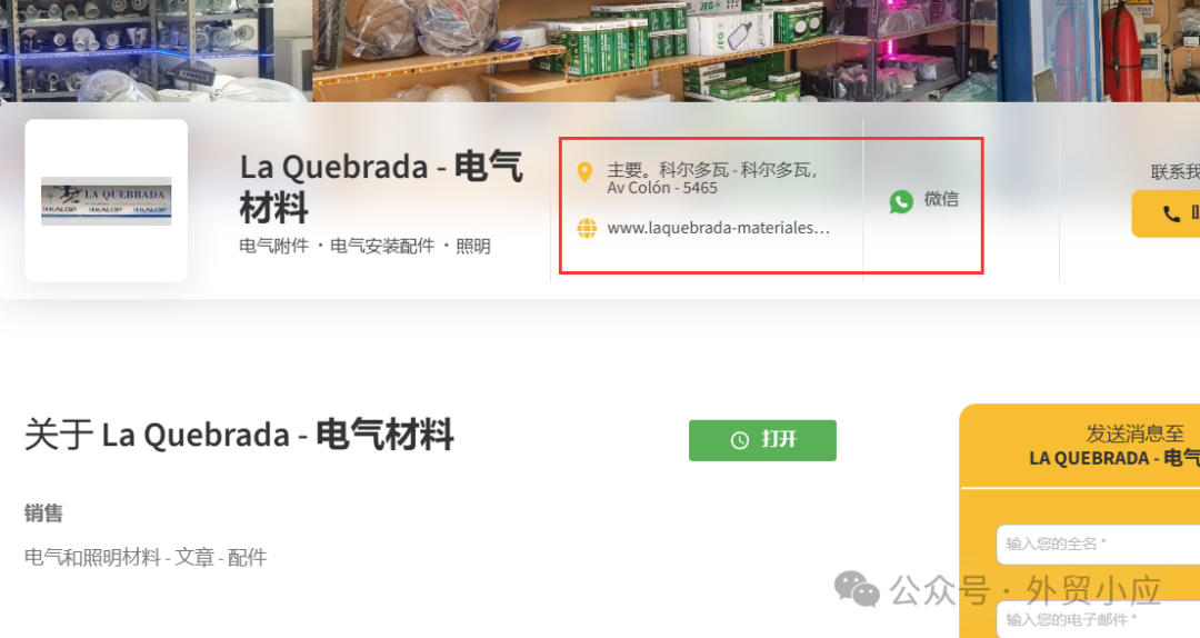 可以查看到客户公司名称,网址,电话,whatsapp,邮箱留言,