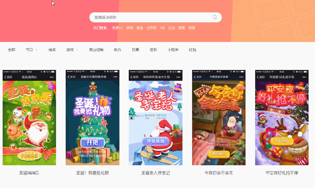 营销活动提供了多种好玩的H5互动游戏模板,企业只需根据自身品牌特点进行个性化定制即可。