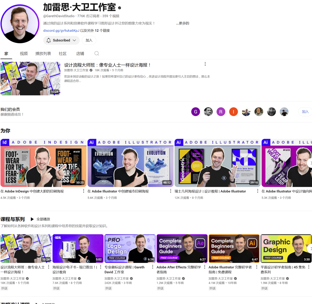 是学习平面设计的宝藏。他的教程详细而且非常系统,从色彩理论到排版布局都有涉及,非常适合想要打好设计基础的朋友。