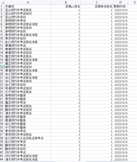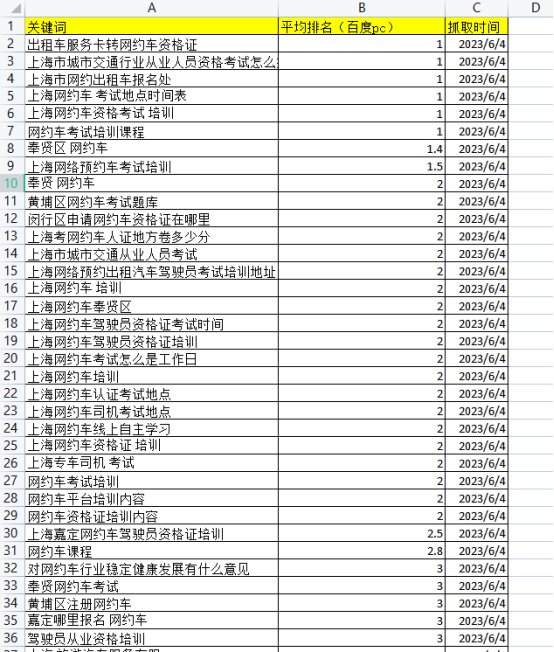 https://www.ddbus.com/applets/的标题:网约车考试小程序-可在线模拟考试的小程序-司机通 https://www.ddbus.com/train/的标题:网约车培训内容-网约车从业资格证考试线下培训-司机通跟客户简单沟通后,发现用户的业务仅做上海区域,都是需要学员来上课的,要求布局全上海各区关键词。考虑客户行业的特殊性,我对用户的关键词进行了属性归类,大致分为以下几种;