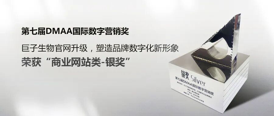 上线后的巨子生物官网,作为皮肤护理行业标杆案例,还荣获了“第七届DMAA国际数字营销奖-商业网站类-银奖”。