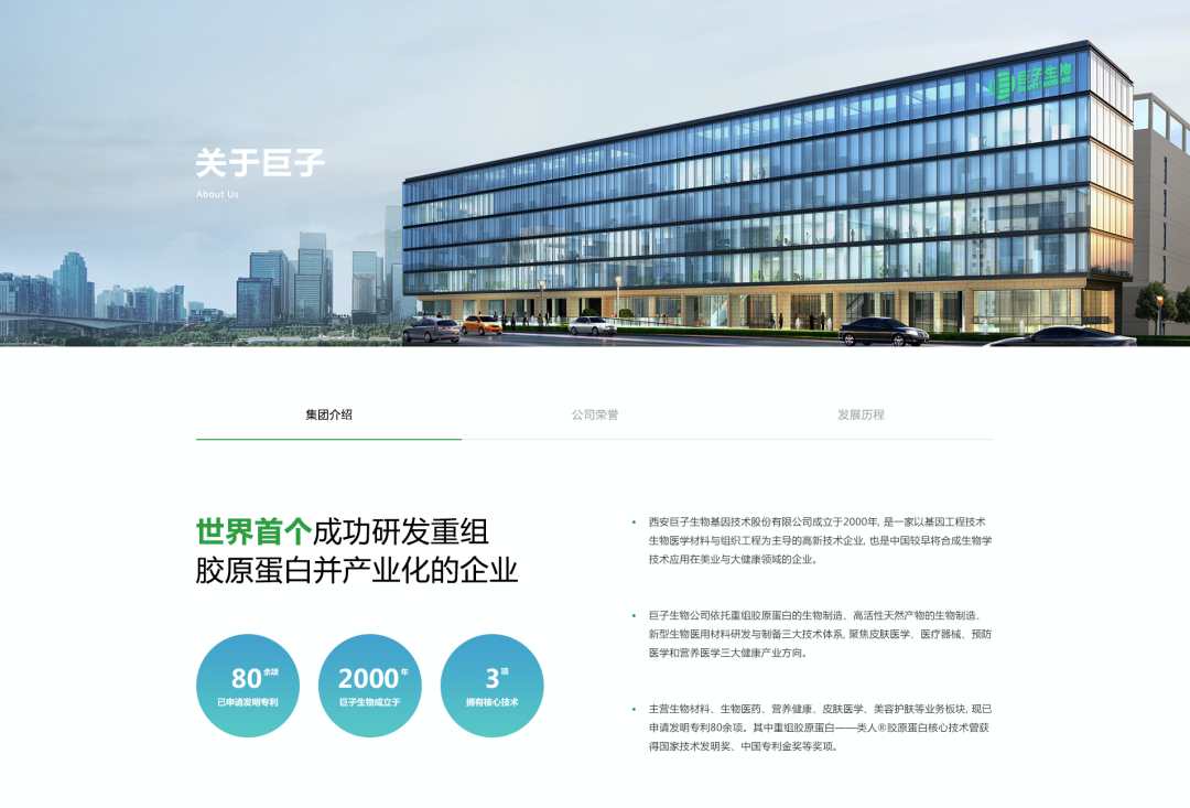 随着公司发展与市场变化,作为国内颇具影响力的、领先业内的高科技公司,原网站已经不符合企业运转的实际需求,巨子生物官网需要以全新的形态向用户传递更具竞争力的一面,从而突出产品价值,提升品牌调性,增加知名度。作为线上流量入口,官网的升级将更好地帮助巨子生物提升品牌形象与获客效率。中企高呈希望通过此次改版,帮助巨子生物打造品牌升级孵化器,有效提升其行业内的品牌影响力。结合巨子生物旗下明星产品,引爆品牌声量,以更广的辐射度,提升自身产品热度及品牌美誉度,实现了品牌传播与渠道营销的深度结合,为行业的品质自信树立标杆。
