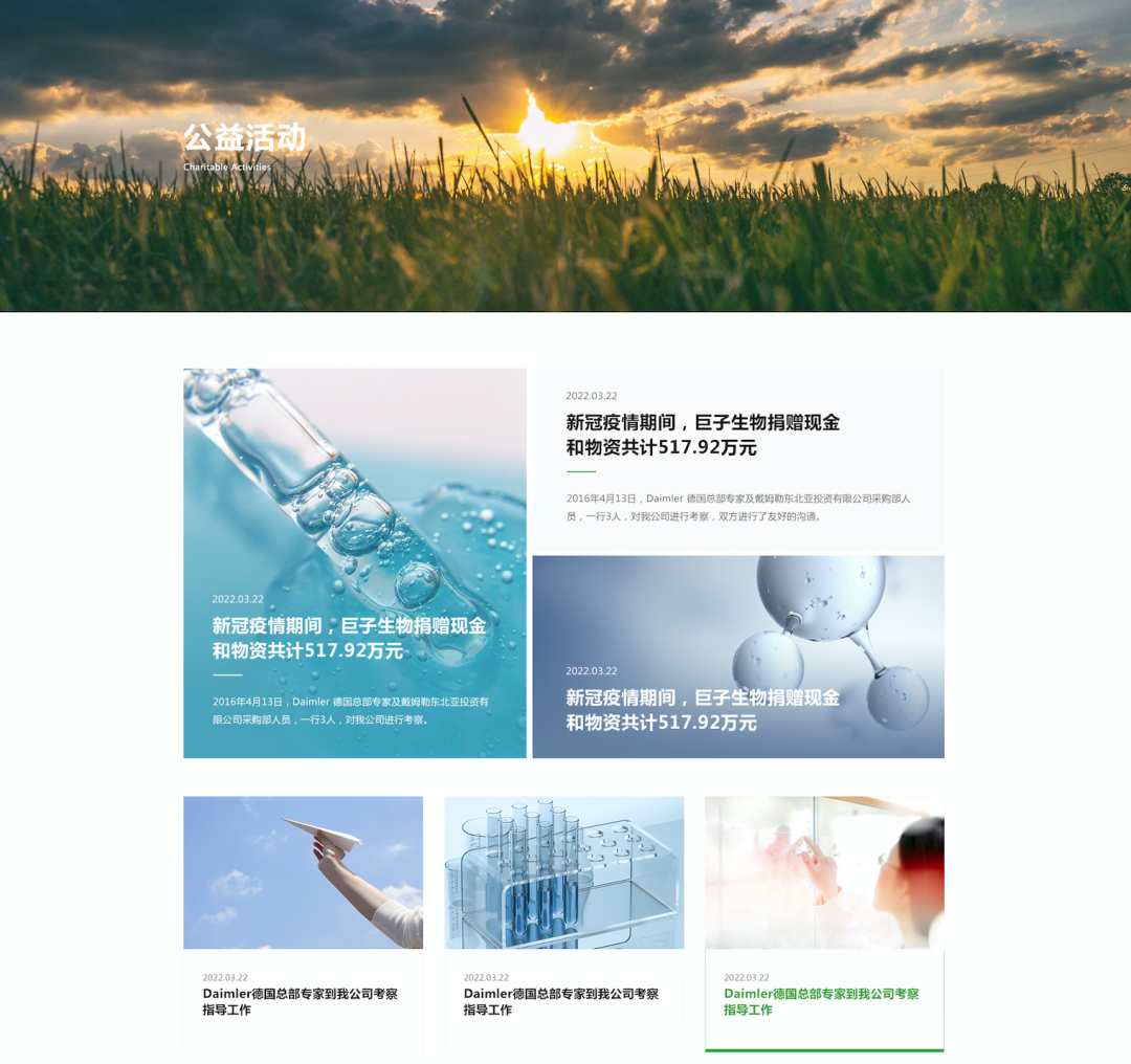 2)在页面布局上,简化用户界面,去除不必要的元素,减少用户的认知负担。首页部分,突出品牌定位、公司业务、科研与技术,以递进式信息传达,逐渐加强用户对品牌认知度。