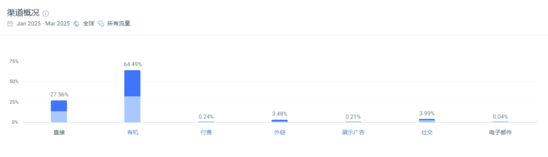 根据similarweb数据显示,Curbell Plastics官网的流量主要来自于自然搜索流量(64.49%)、直接访问流量(27.56%)、社交媒体(3.99%)。