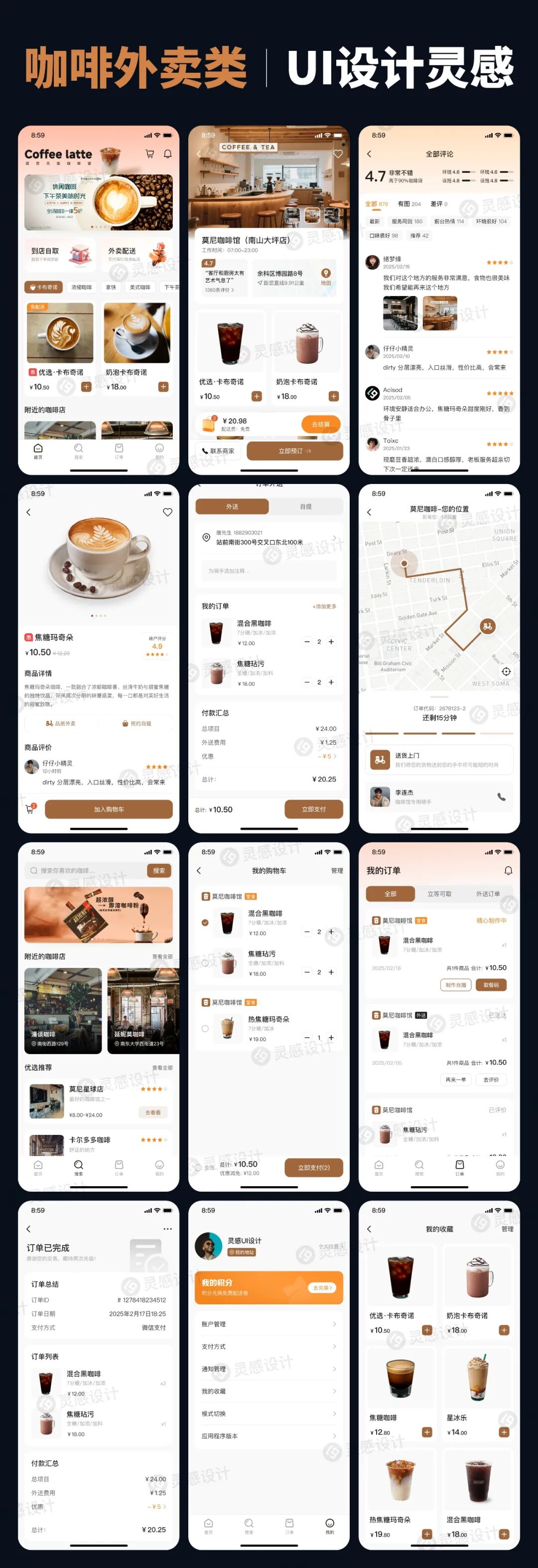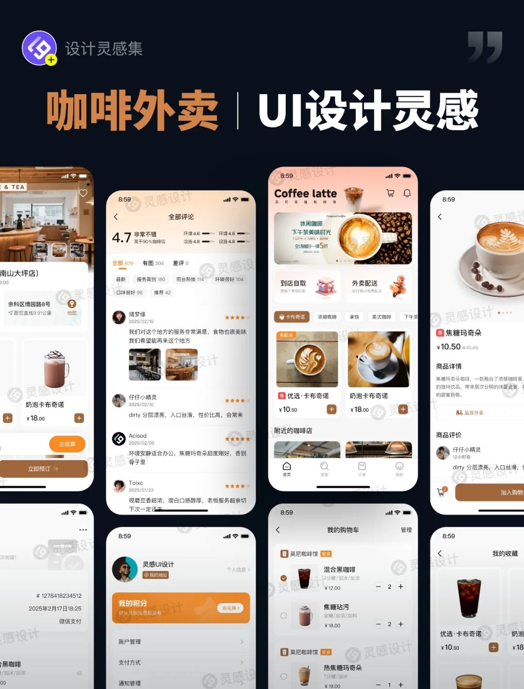 Hellor!今日灵感分享:概念咖啡在线点餐外卖配送UI界面设计!!