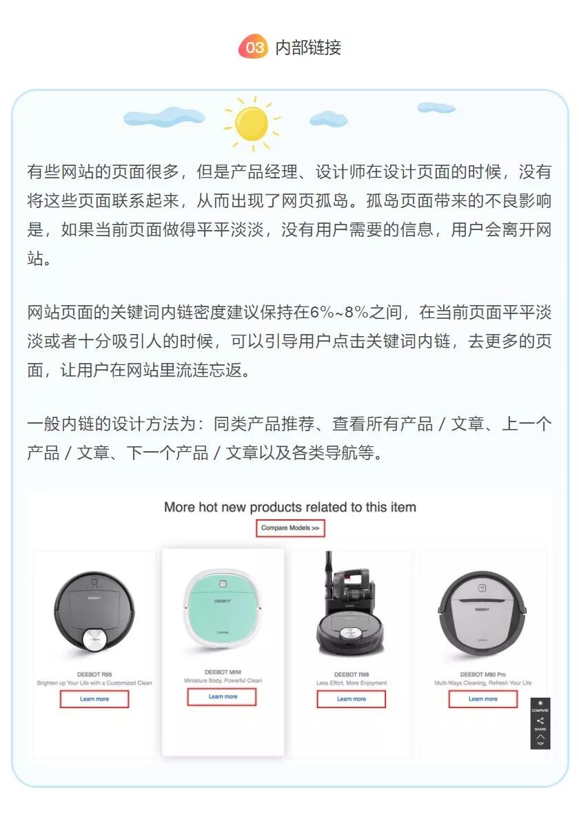 高质量的精修产品图片、产品视频、抓人的文案、阅读舒适的排版……这些都提升页面的转化率的制胜法宝。那么,如果展示的是同一品类的产品,比如扫地机器人,我们应该怎样通过设计去体现不同型号的价格呢?