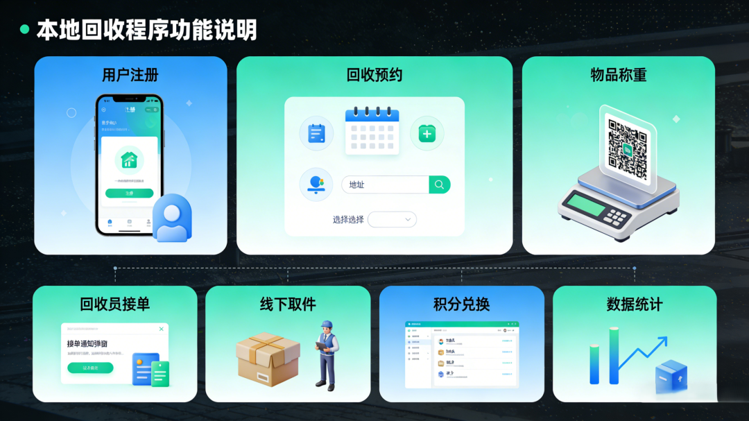 一、本地回收小程序开发|必做8大核心功能不用追求“功能越多越好”,核心是「贴合本地回收场景、落地能用」,以下8项是专业软件开发公司实战验证的刚需功能,也是商家高频需求: ✅ 1. 本地LBS定位+精准预约开发