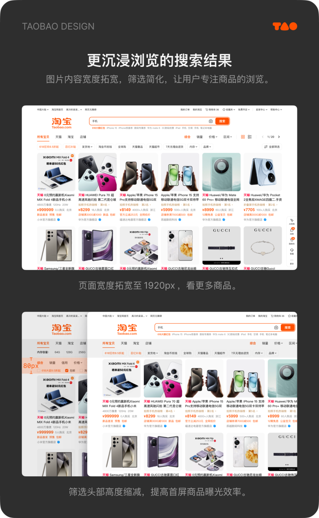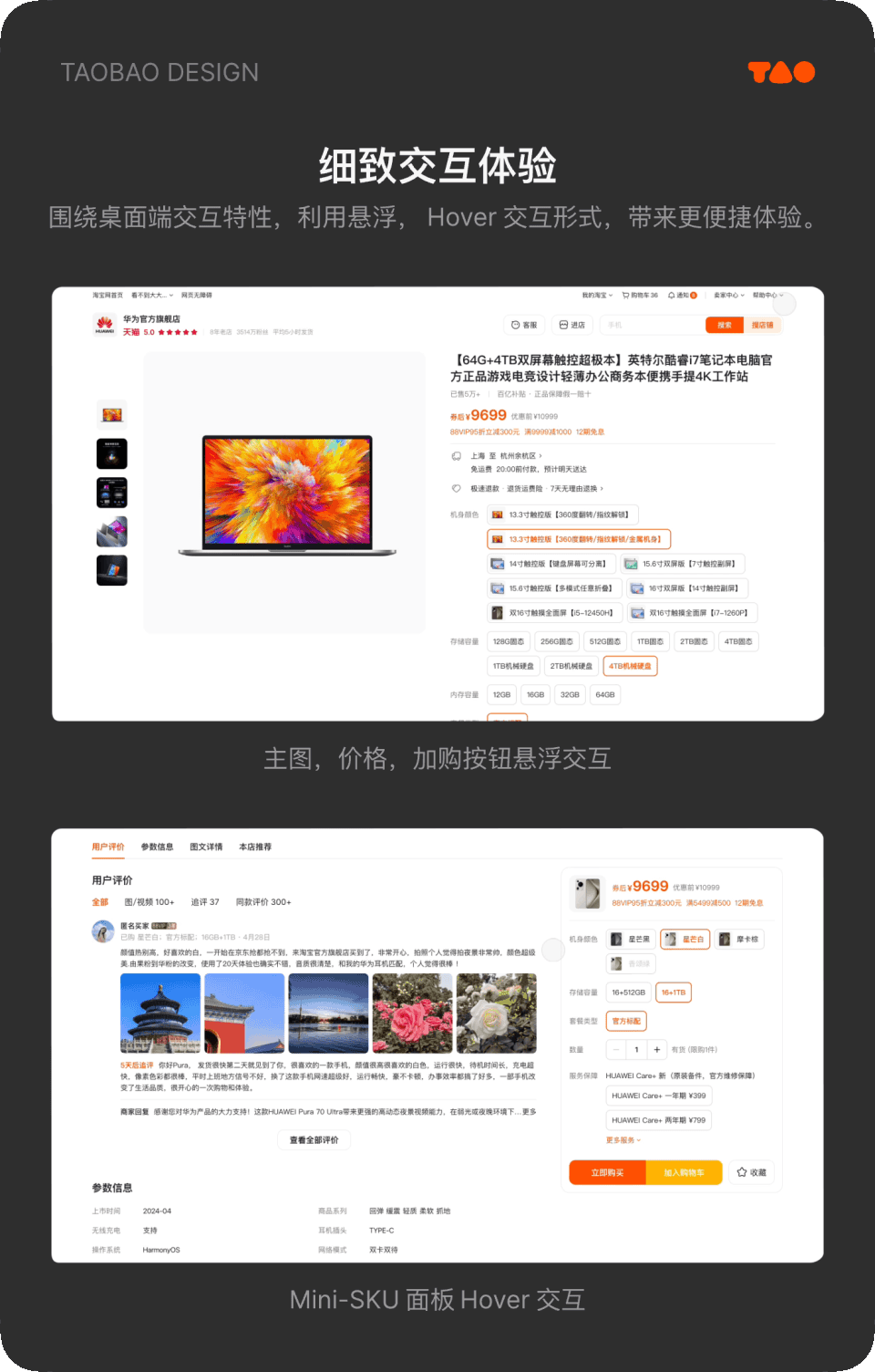 Web端有别于移动端的交互特性,在设计上也能够带来更多的交互形式上的创新。如已经在探索的:小窗模式,分屏模式等等。手淘设计师也将继续持续优化Web端淘宝网的用户体验。
