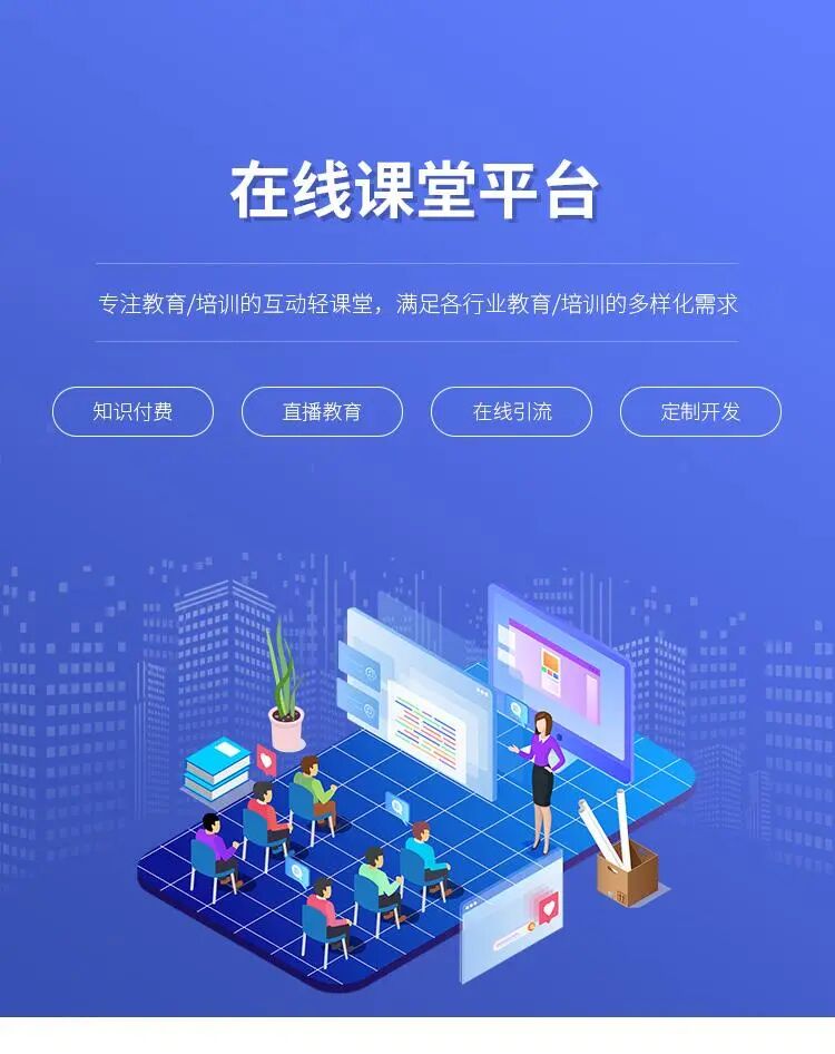 在线教育系统适用于各类教育机构或企业,满足网校+在线教学全场景需要。多终端支持,建立跨平台品牌网校。支持定制开发,源码交付支持二次开发,私有化搭建自有品牌部署。