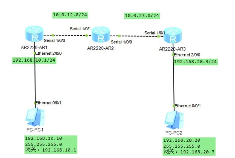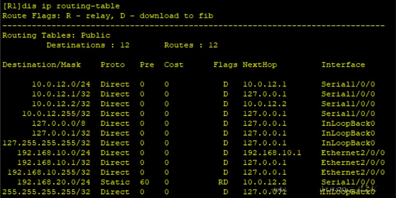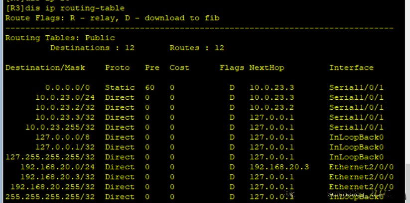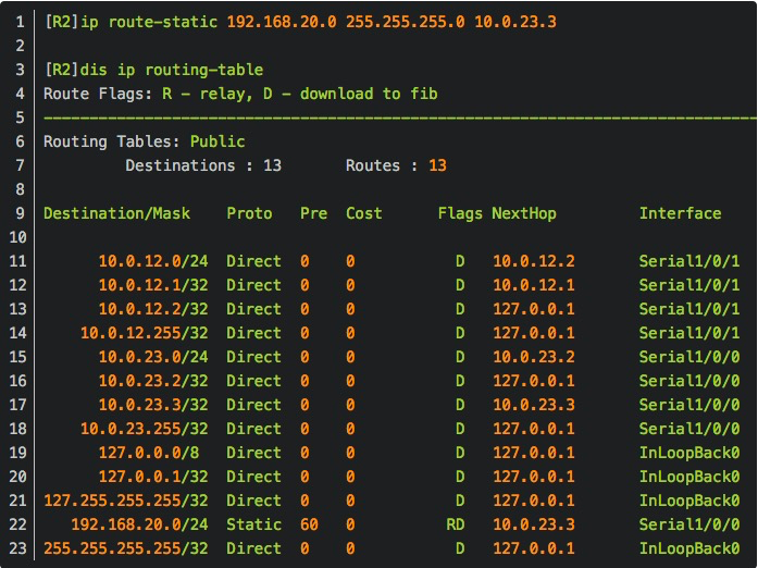 [R1]ip route-static 192.168.20.0 255.255.255.0 10.0.12.2