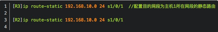 现在需要在R2和R3上的路由表中添加主机1所在网段的信息:
