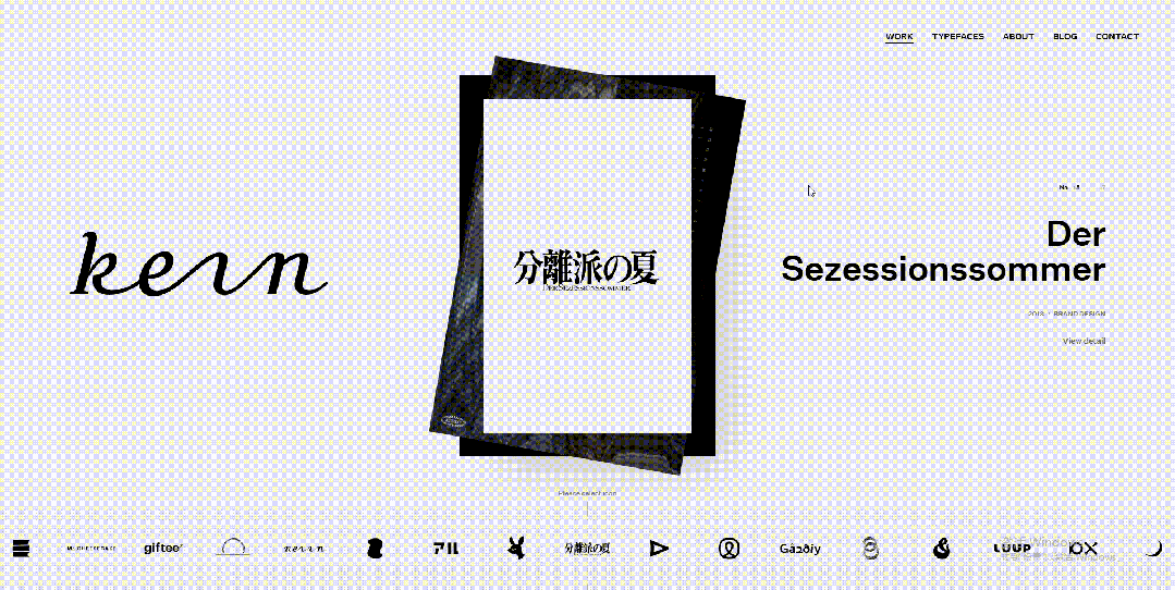 在网页中,光把卡片设计好是不够的,我们还需要在切换卡片时给它加上足够的设计感,下面给大家分享几个卡片切换展示设计的案例。下面这个案例,展示的是LOGO设计案例。用户通过滑动屏幕,来切换不同的LOGO案例。每切换一个LOGO,LOGO就会出现一张卡片飞到画面中间去,中间的卡片也会跟着LOGO的颜色进行变化。