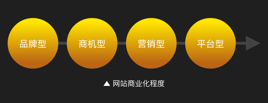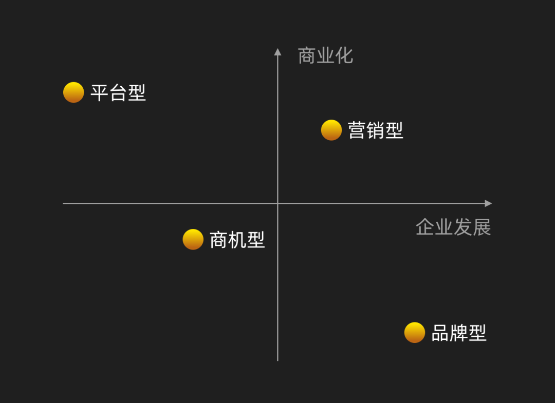 单独从商业化的角度看,遵循着以下关系,品牌型<商机型<营销型<平台型。