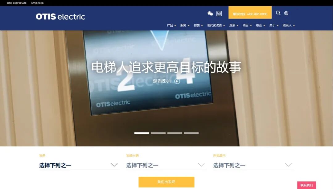 在策划奥的斯机电官网之初,我们就充分考虑了其产品多、客户群多样的特点,在首页通栏下方就设计了个性化的搜索功能。通过高效的搜索算法和精准的搜索结果,让用户能够轻松找到所需信息。号召性用语(CTA)是引导用户采取行动的关键元素。在设计网站时,可以通过使用颜色、布局和视觉提示,确保用户一眼就能看到CTA。同时,CTA的文案应简洁明了、能刺激转化,确保用户能够迅速理解并采取行动。