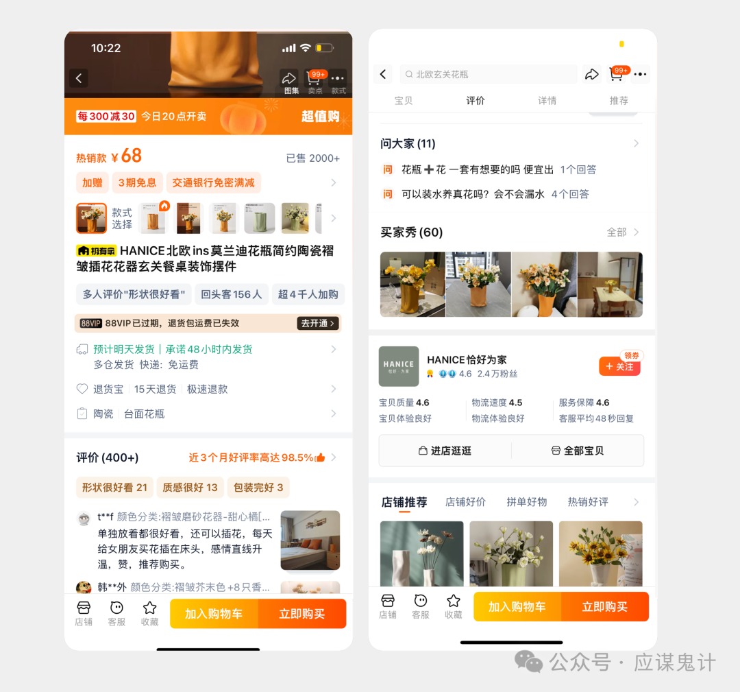 还有就是在一个界面中,我们会发现有很多按钮,单按钮之间也有阶级斗争,也都是根据不同优先级来设计强弱的,例如淘宝详情中有很多按钮,有大色块、小色块、大幽灵、小幽灵、还有大浅色块、小浅色块、纯文字+箭头、纯文字,非常的有等级概念对吧。