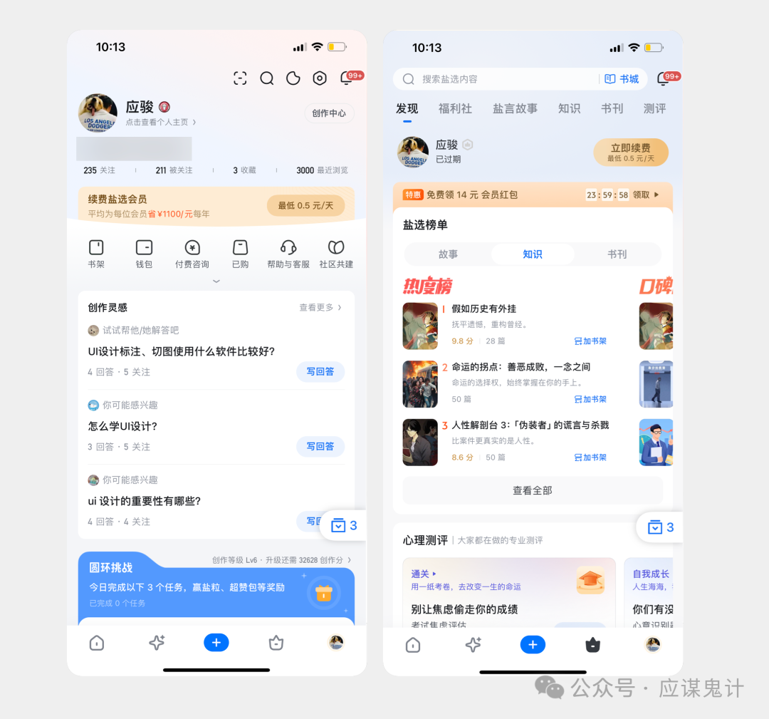 还有例如蓝色的知乎,常规的4强信息可以用主色来上,但是警示信息用蓝色明显就不合适了,所以暖色在蓝色为主色的产品中是一定会存在的,而且也不仅仅局限于警示信息,像热度榜、口碑、会员等一些正向、积极、付费转化的业务属性信息都可以用暖色。