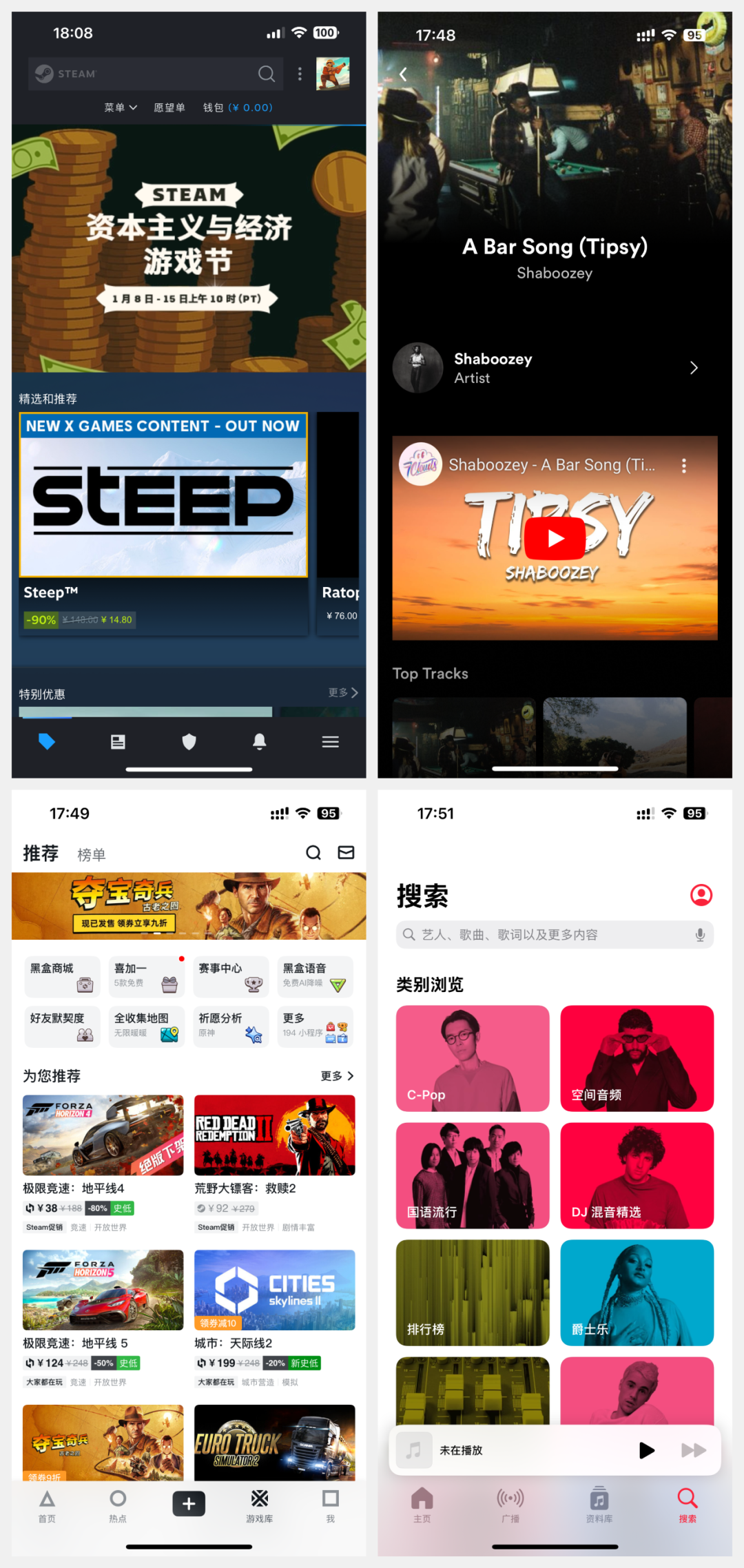 这种风格的设计往往就不会去适配系统主题的切换,因为它已经是深色了,那么当系统主题改成深色模式就没有必要再提供一套设计。另一个次要的原因,就是深色模式作为浅色模式的补充,它的选色逻辑是不同的,是基于原有配色上做出变体完成的,而不是单独选配。除了模式和风格差异外,还有个需要理解的概念即 —— 深夜模式。今天很多人会把深夜模式和深色模式等同起来,但两者并不是一种东西。深色模式的出发点是提供两种系统级的色彩方案,给用户提供更多的个性化设置选项(比如我就喜欢用深色模式)。深色模式在夜间有更好的使用体验只是附带加成,但不表带深色模式在白天就不能正常用了。而夜间模式的出发点,则是在夜间低光源环境中,尽可能减少屏幕自发光的强度,减少用户用眼的疲劳。夜间模式的配色逻辑和深色模式不同,但因为现在深色模式的普及且附带了夜间的特性,所以多数应用都放弃了夜间模式功能。所以最后总结一遍,在我们进入配色阶段,首先要确定配色风格,是使用浅色还是深色风格,它们都要独立完成色彩的选择。如果一开始先做了浅色风格,但还要添加深色模式,那就要在浅色模式的配色基础上进行深色的选色,确定一套匹配的深色模式配色标准。