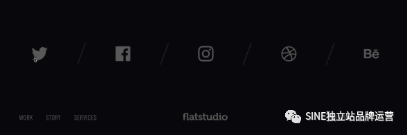 底部是一排浅灰色的社交链接。你可以编辑图标,使其适合你品牌的色调。