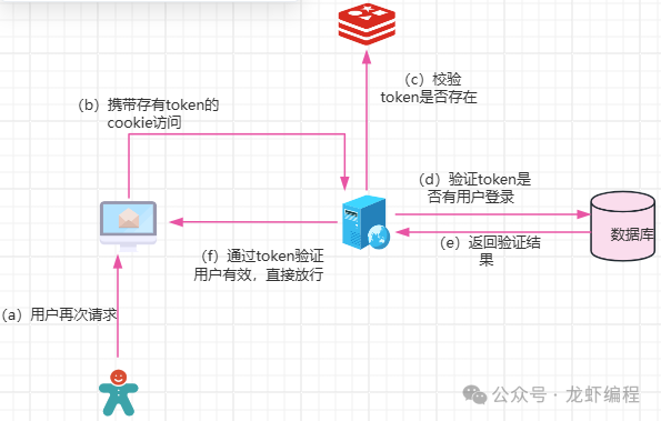 (2)用户下次再访问服务的时候,请求中携带有Token的Cookie访问服务端,服务端要从请求的Cookie中获取Token的信息,流程图如下所示:
