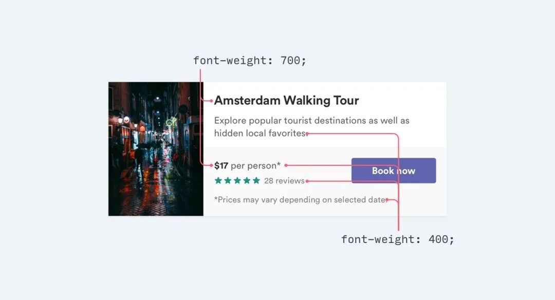 大多数的文本采用正常的字重(400到500,具体取决于字体)对于需要强调的文字采用较重的字重(600到700,具体取决于字体)
