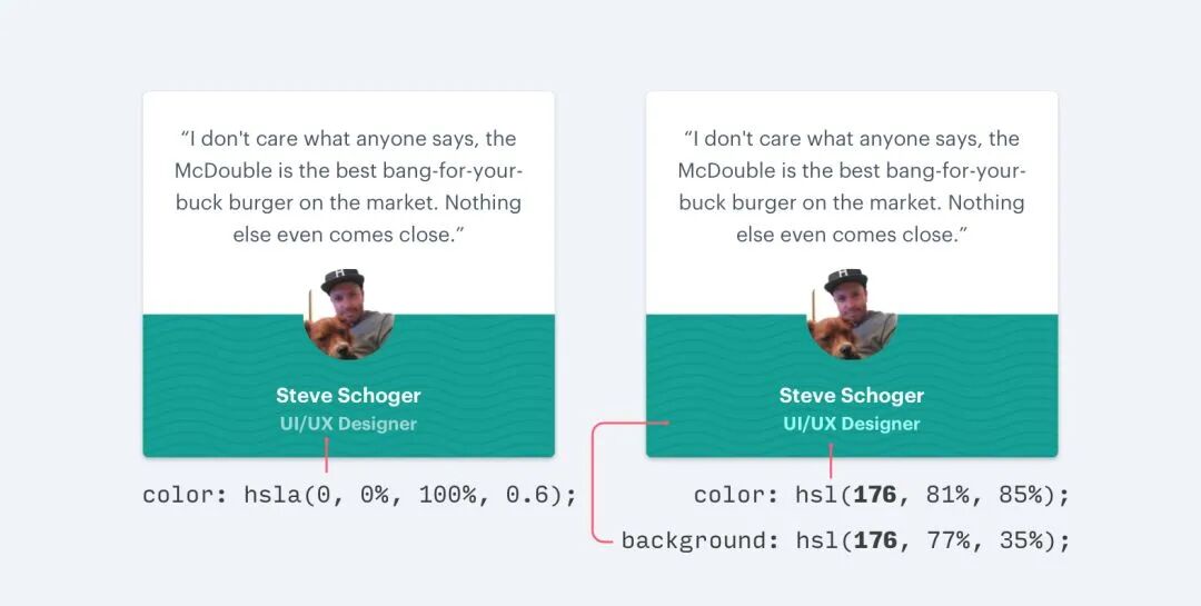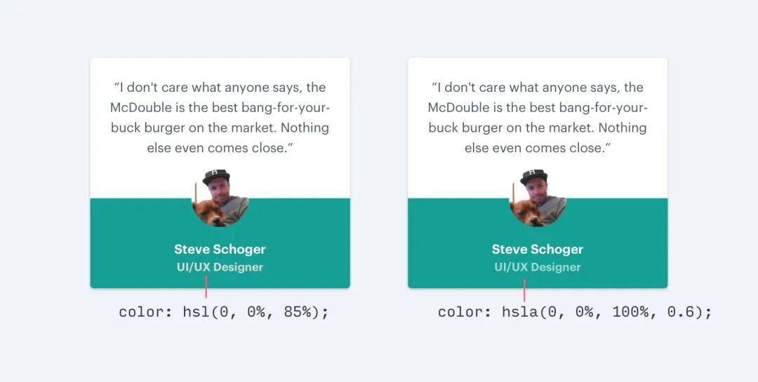 降低不透明度,能够让背景的颜色透过来一些,以一种不冲突的方式降低前景文字和背景之间的对比度。
