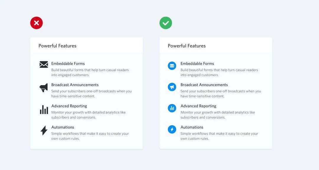 当你在设计着陆页的时候,可能会突出产品的功能,这个时候你需要一些大图标来作为视觉锚点。