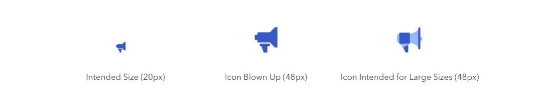这样的设计不仅能够让图标达到预期的视觉体积,而且看起来要比单纯放大,看起来细节会更多一些。